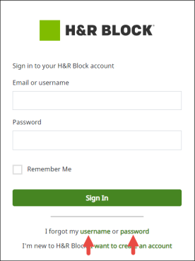 Note: If you forgot your username or password, click the appropriate link in I forgot my username or password on the Sign In page. Follow the prompts to recover your username or password. You will receive an email from H&R Block Canada with your username or a link to reset your password. Follow the instructions in the email to sign into the 2021 H&R Block DIY tax software.